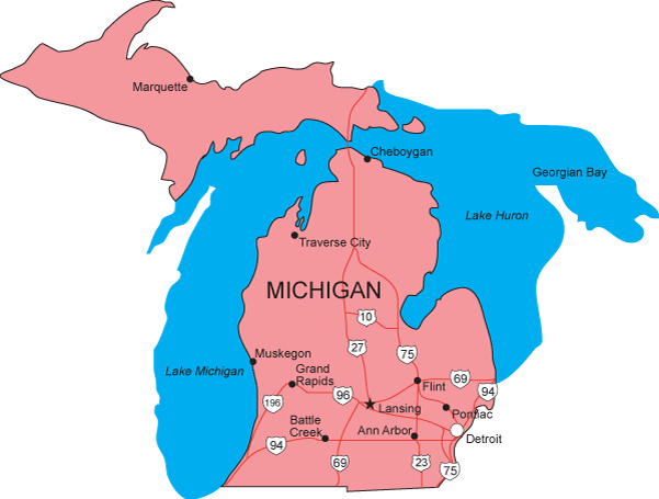 michigan mi flag state map shape simplified usa vector isolated white background stock