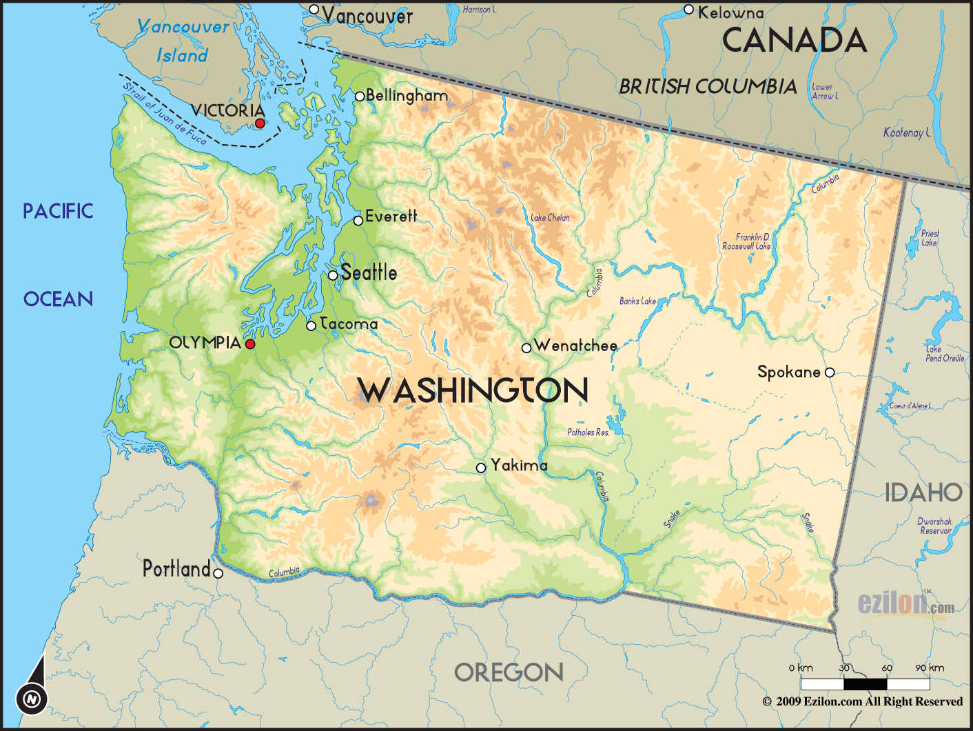 Not only Washington State Map, you could also find another pics such as Physical Features, Pacific Coast, Indian Tribes, National Parks, Zip Code, Fault lines, 7th District, Population Density, Major Cities, Natural Resources, Road Trip, and Canada Border.